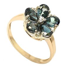ЗОЛОТОЕ КОЛЬЦО С ЛОНДОН (LONDON) ТОПАЗАМИ И ФИАНИТАМИ